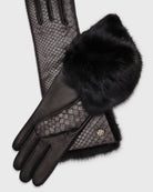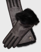 Jacqueline Black Python Gloves with Mink Fur Details