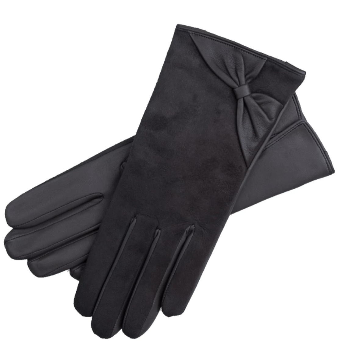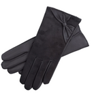 Express your femininity with a pair of beautiful suede leather gloves. Handmade by our leather artisans in Pecs, Hungary. We use buttery-soft Italian Nappa leather and line it with 100% cashmere for added warmth. The decorative leather bow is a lovely detail, which makes this pair of gloves stand out.
