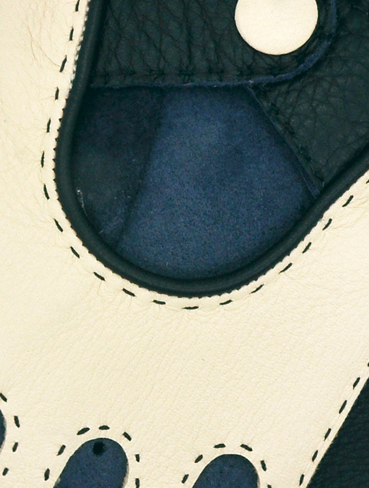 Rome Women's Fingerless Creme and Blue Deerskin Driving Gloves