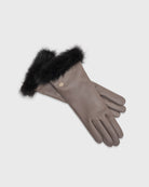 Accented with Mink Fur details, these grey Hamerli gloves are hand-crafted from soft Nappa Leather and feature 100% cashmere lining for ultimate comfort. All Hamerli gloves are table cut, one by one, according to the French tradition of glove making dating back to the 17th century. All our leathers are ethically sourced from the best tanneries of Italy and France.