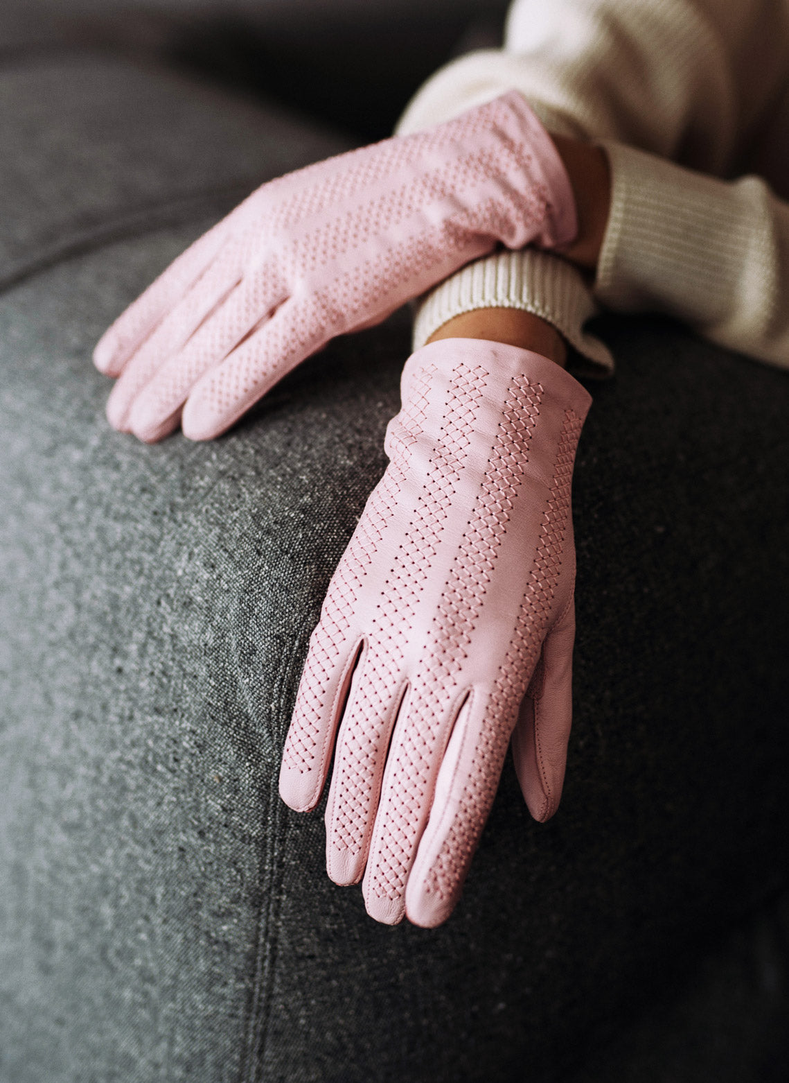 Rome Women's Fingerless Creme and Blue Deerskin Driving Gloves