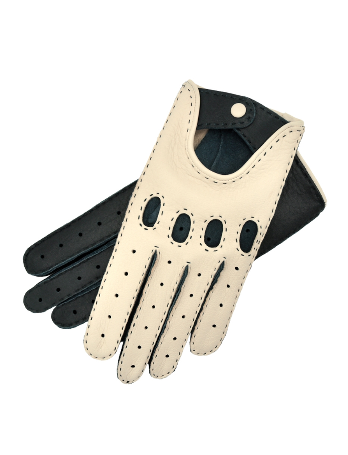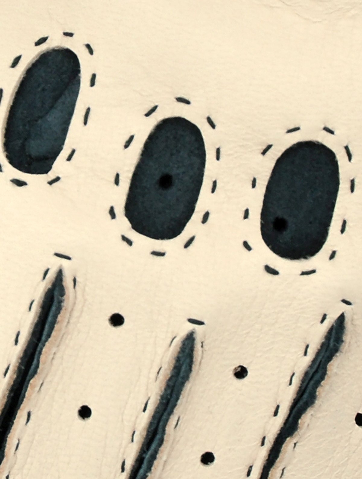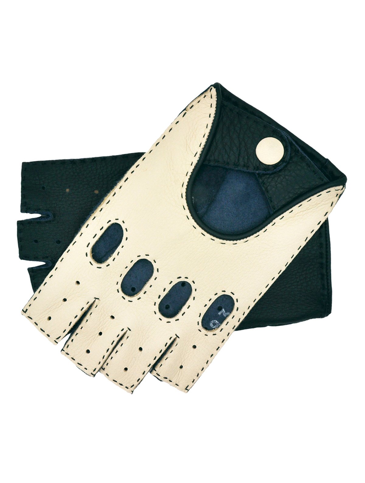Rome Women's Fingerless Creme and Blue Deerskin Driving Gloves