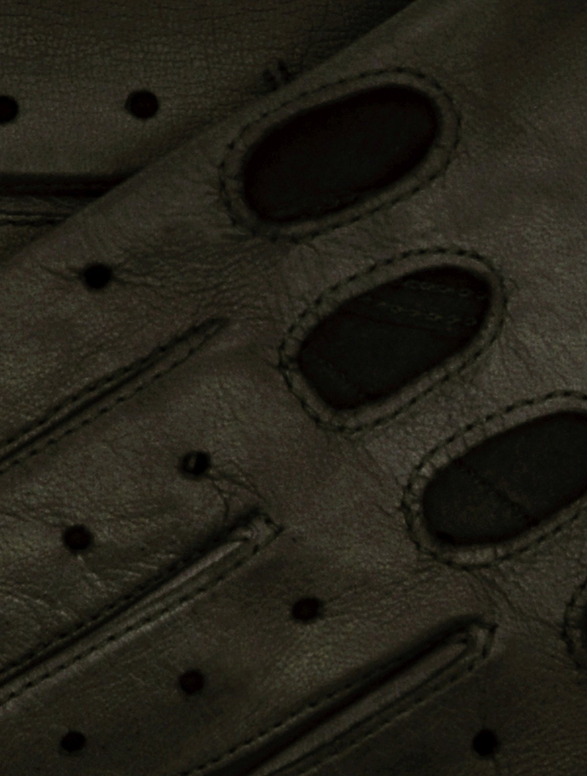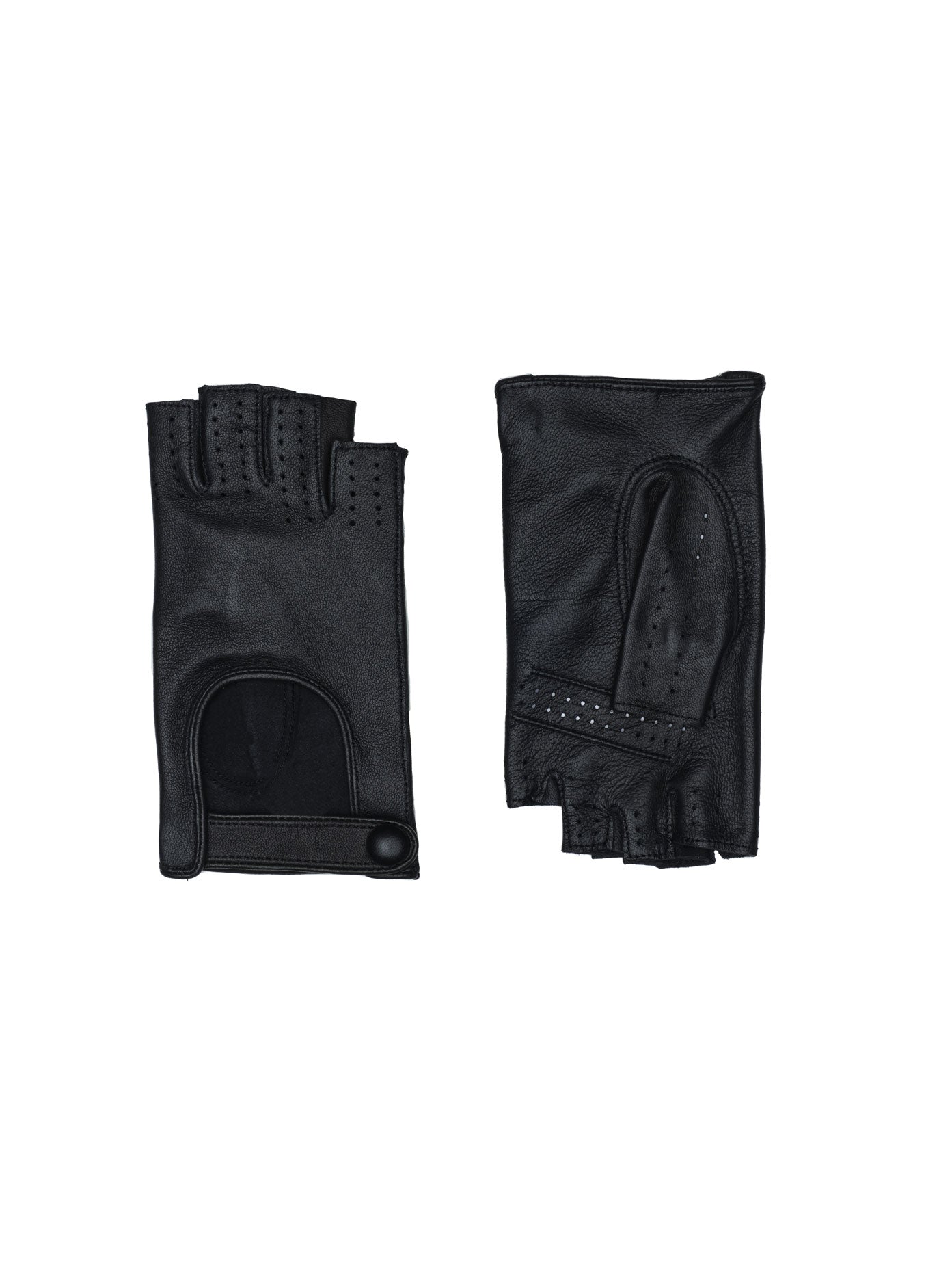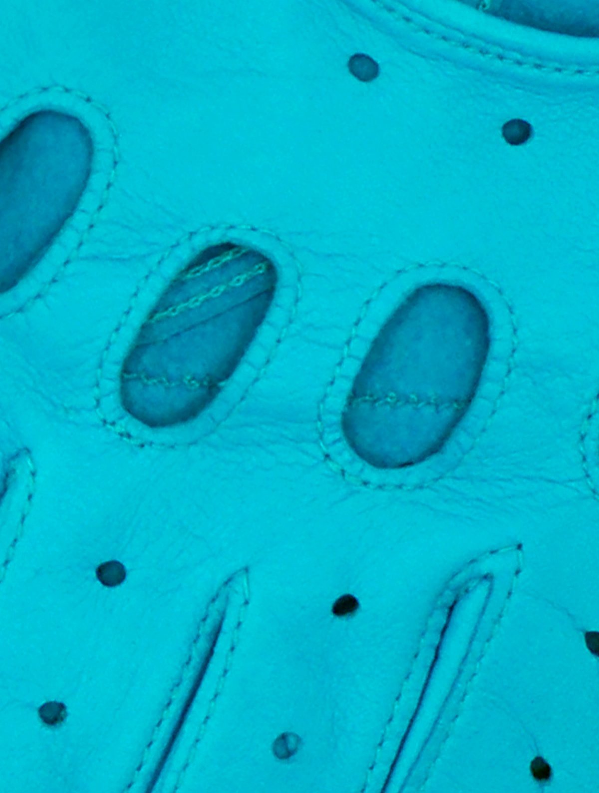 Rome Women's Fingerless Creme and Blue Deerskin Driving Gloves